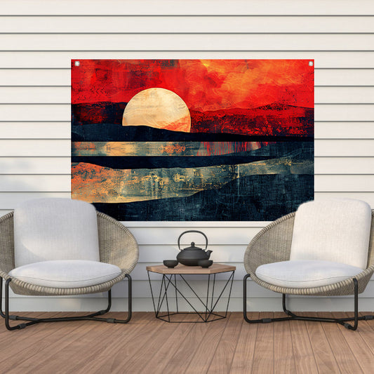 Abstracte kleurrijke zonsondergang over water tuinposter