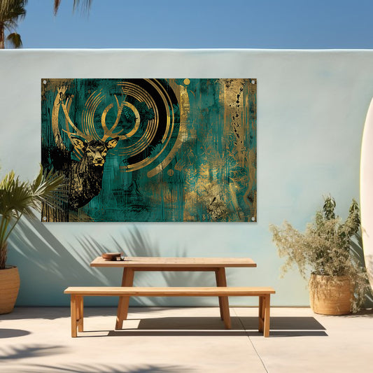 Abstract hertenportret met gouden accenten tuinposter