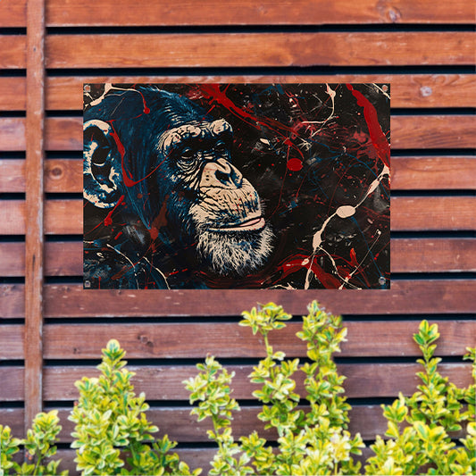 Abstract schilderij van aap met verfspetters tuinposter