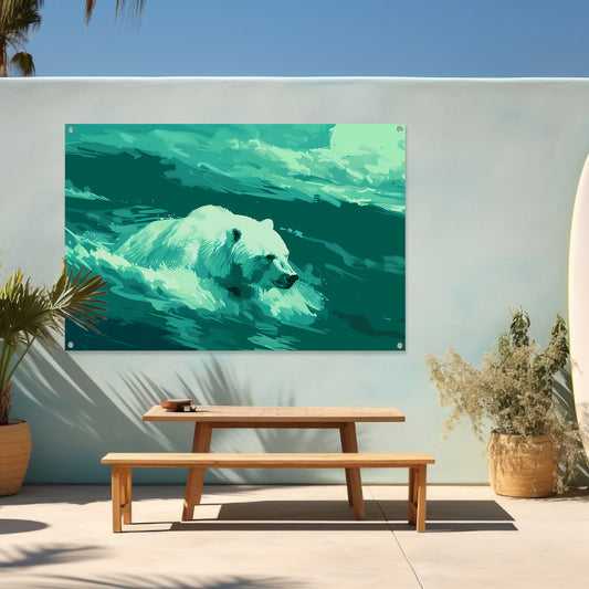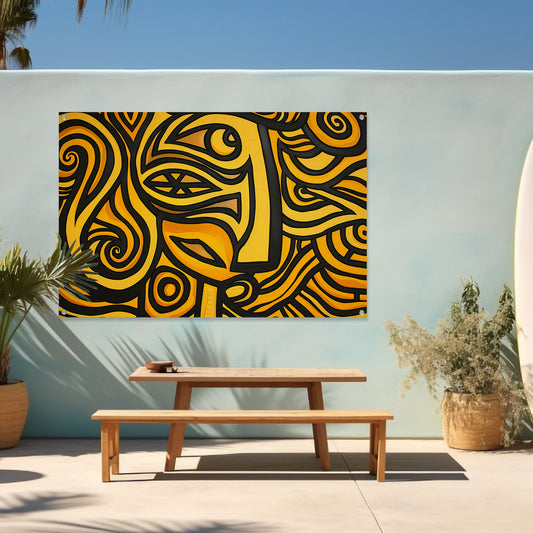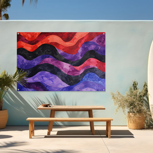 Abstracte golvende lijnen in levendige kleuren tuinposter