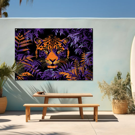 Popart schilderij van een kleurrijke jaguar tuinposter