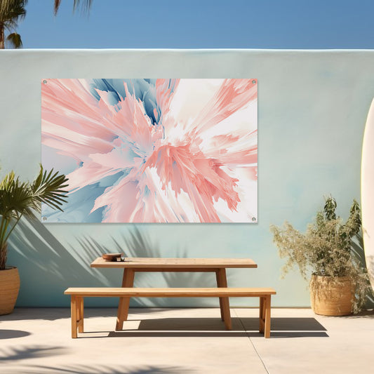 Abstract schilderij met zachte kleuren en dynamiek tuinposter
