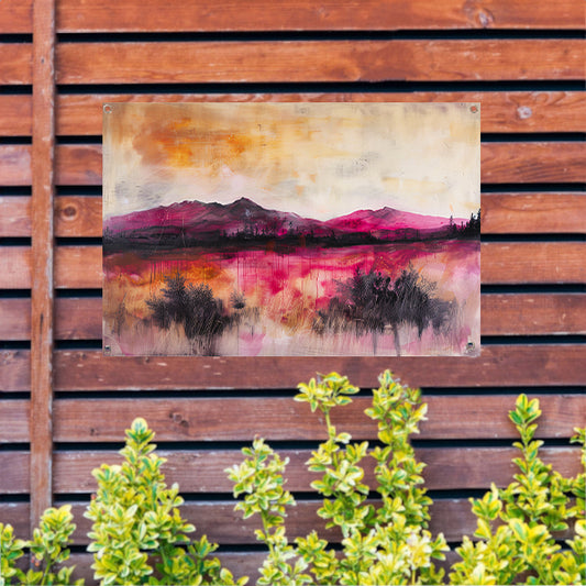 Kleurrijk abstract berglandschap met natuur tuinposter