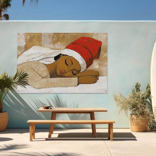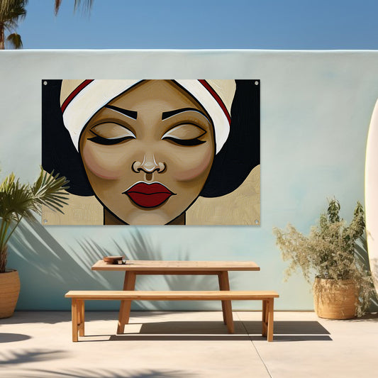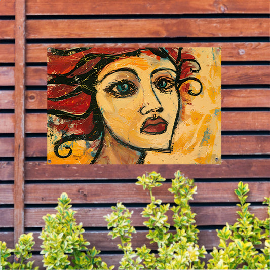 Expressief, surrealistisch portret van een vrouw tuinposter
