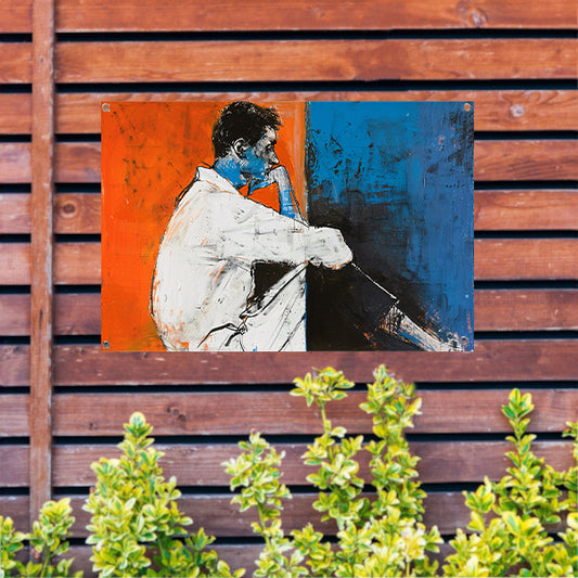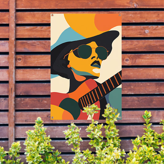 Abstract Muzikant met Kleurrijk Gitaar tuinposter
