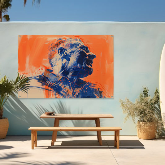 Abstracte tulp tegen dynamische blauwe achtergrond tuinposter