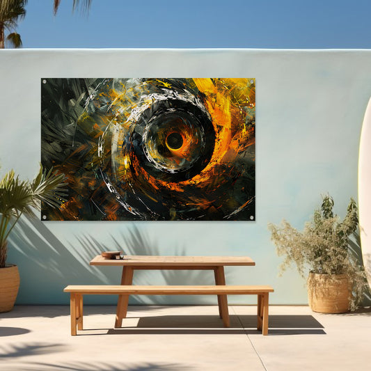 Dynamisch abstract schilderij met spiraalvormen tuinposter