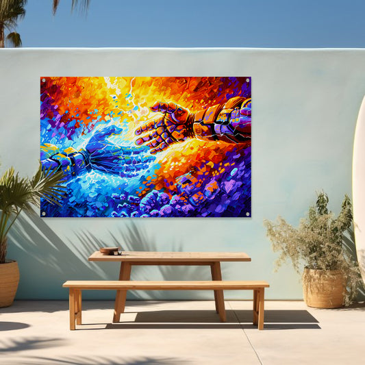 Dynamisch abstract schilderij met levendige kleuren tuinposter