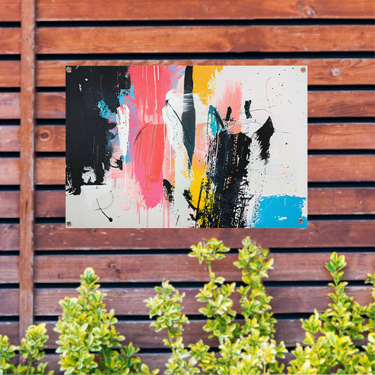 Dynamisch abstract schilderij met expressieve kleuren tuinposter