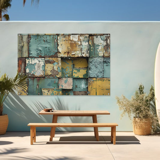 Verweerd abstract patroon schilderij met kleuren tuinposter