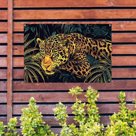 Gedetailleerde lijntekening van een jaguar in jungle tuinposter