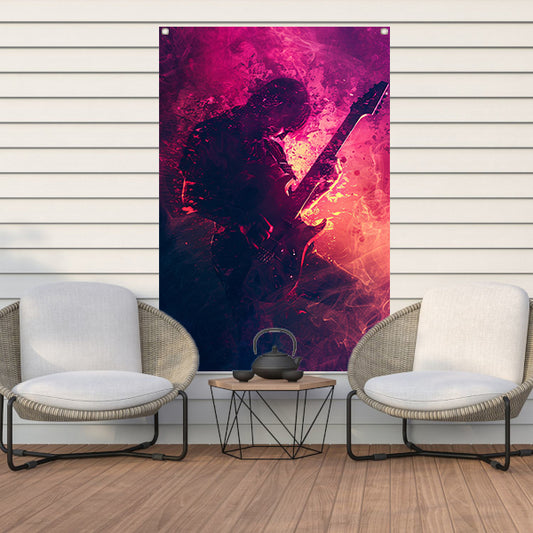 Gitarist omhuld door Abstract Kleurrijk rook tuinposter