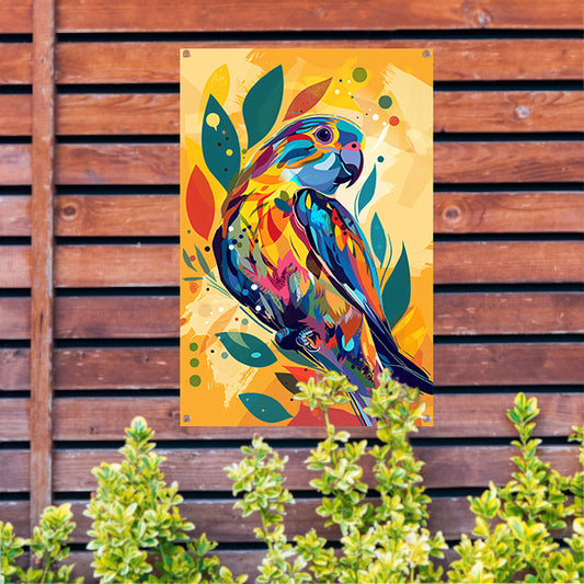 Abstract Papegaai in Kleurrijk Jungle tuinposter