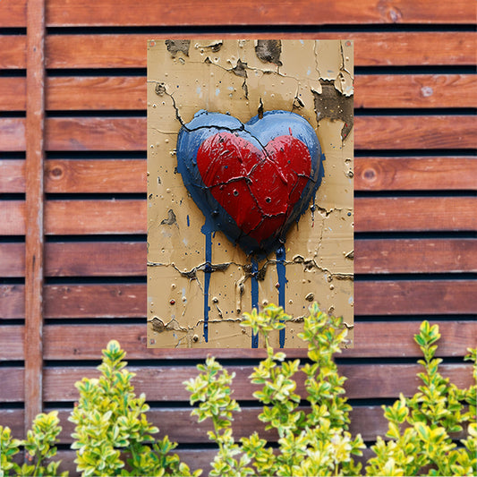 Gebroken Rood Hart op Verweerde Muur tuinposter