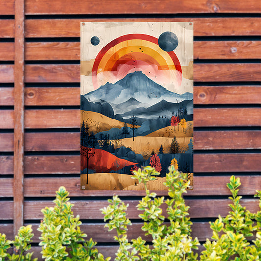 Planeet boven berglandschap bij zonsondergang tuinposterNormale prijs Vanaf €24,95Normale prijsEenheidsprijs / per-