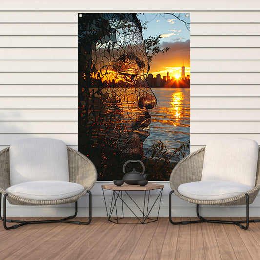 Silhouet tegen zonsondergang in gebroken glas tuinposterNormale prijs Vanaf €24,95Normale prijsEenheidsprijs / per-