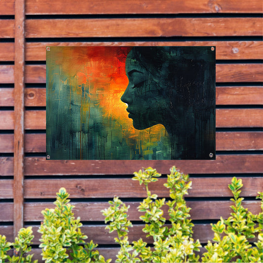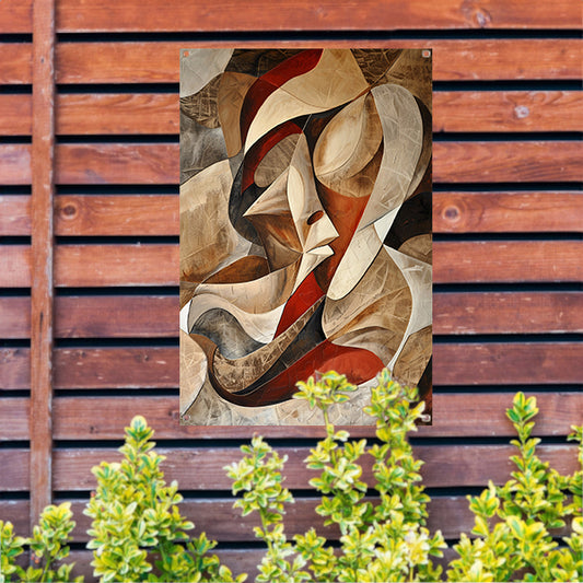 Dynamisch abstract portret met kleurrijke vormen tuinposter