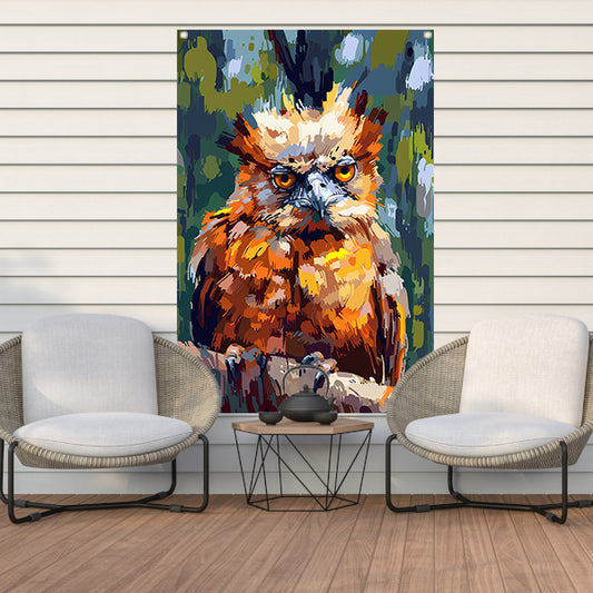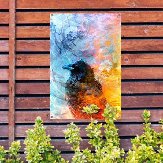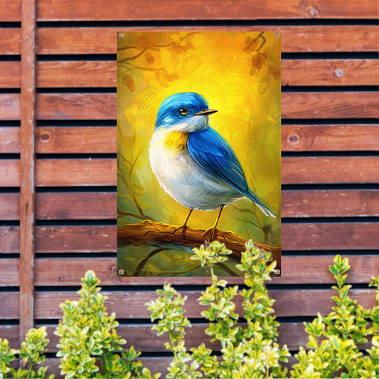 Digitale kunst van kleurrijke vogel in natuur tuinposter
