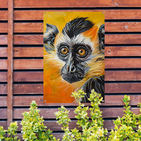 Realistisch schilderij van een kleurrijke aap tuinposter