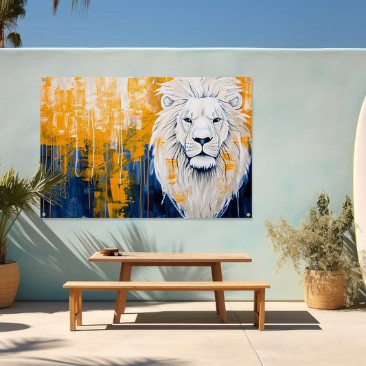 Schilderij van een abstracte blauwe leeuw tuinposter