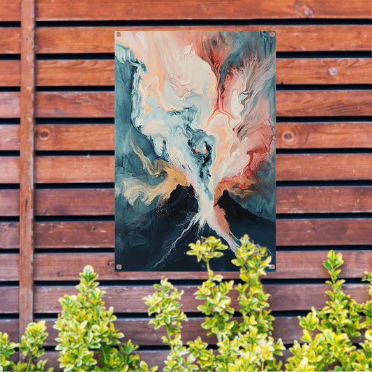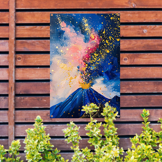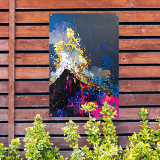 Abstracte vulkaanexplosie in dynamische kleuren tuinposter