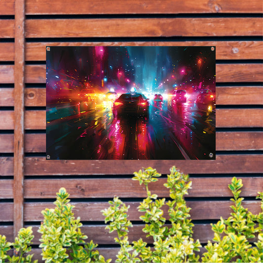 Dynamische Neonverlichte Stadsnacht tuinposter