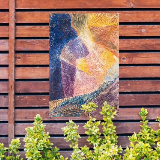 Kleurrijk abstract schilderij van berglandschap tuinposter