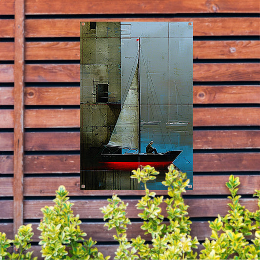 Surrealistisch schilderij van boot bij gebouw tuinposter