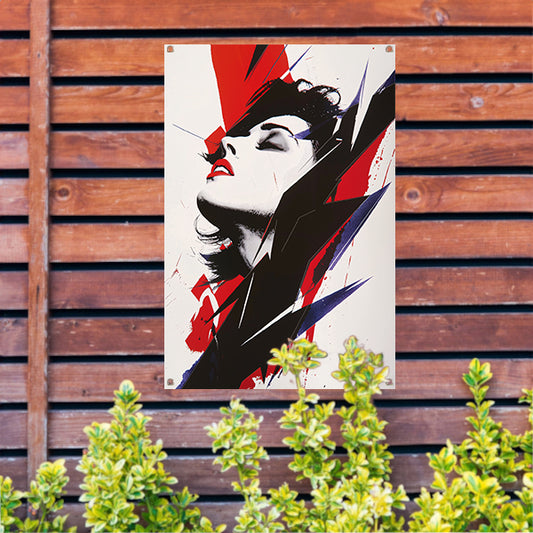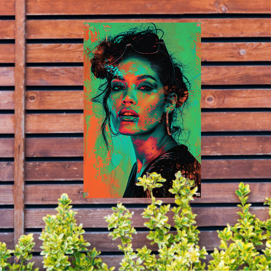 Kleurrijk en dynamisch digitaal portret van vrouw tuinposter