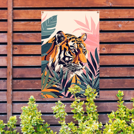 Kleurrijke tijger tussen tropische bladeren tuinposter