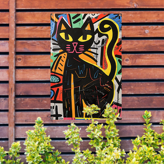 Zwarte kat in kleurrijk street art schilderij tuinposter