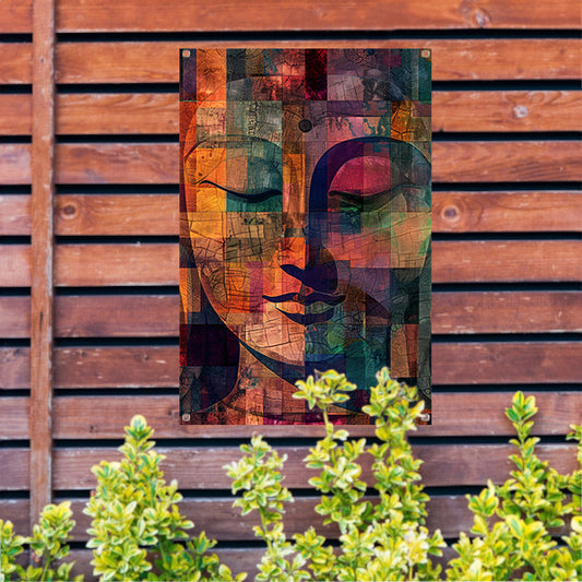 Abstracte Boeddha in kleurrijke kubistische stijl tuinposter
