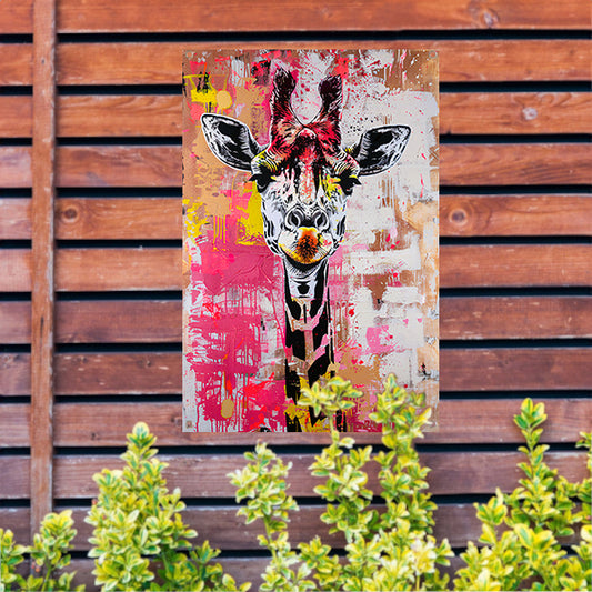 Kleurrijke giraffe met graffiti accenten tuinposter