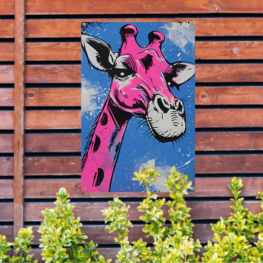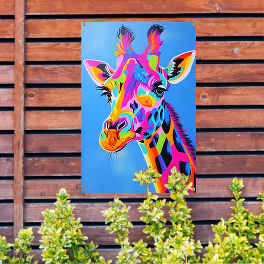 Kleurrijk en opvallend giraffe popart schilderij tuinposter