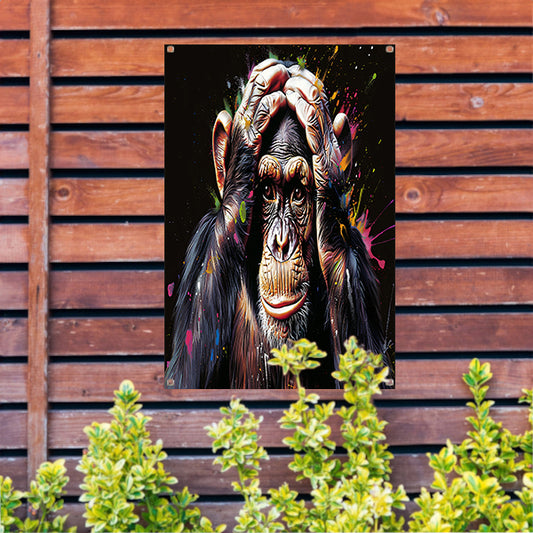 Realistisch schilderij van aap met kleurenexplosie tuinposter