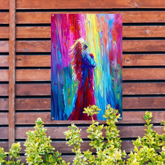 Kleurrijke abstracte schilderij van Schotse hooglander tuinposter