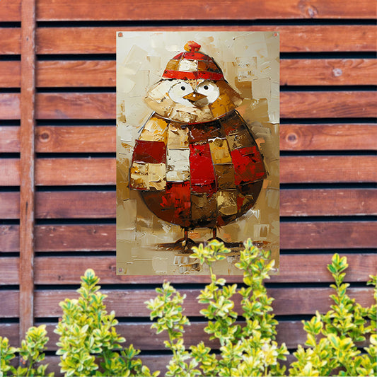 Kleurrijke abstracte vogel met hoed schilderij tuinposter