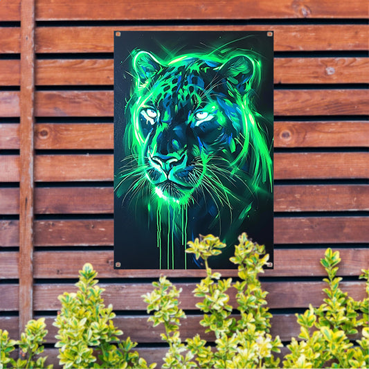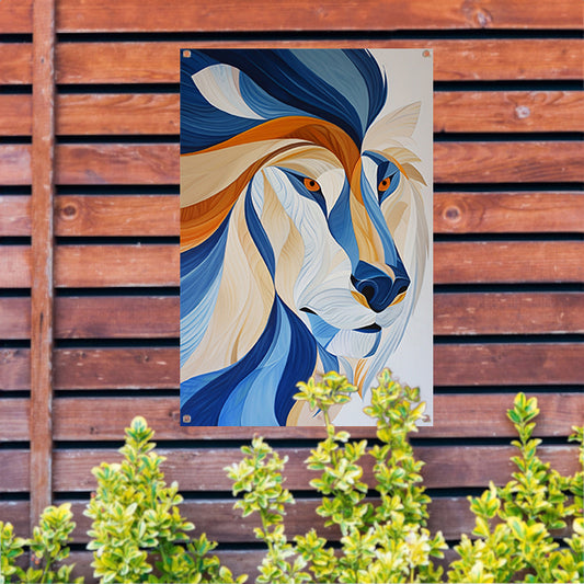Abstract kleurrijk kunstwerk van leeuw tuinposter
