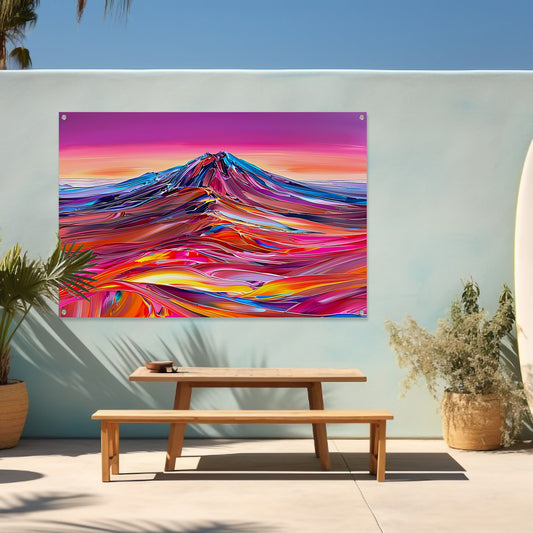 Kleurrijk abstract schilderij van berglandschap tuinposter
