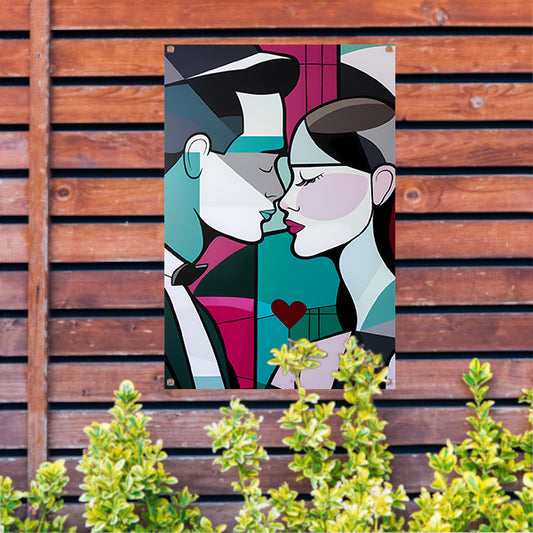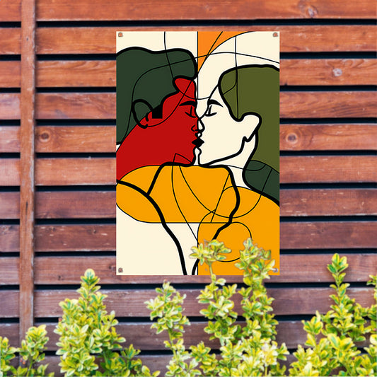 Kleurrijk abstract kunstwerk van verliefd koppel tuinposter