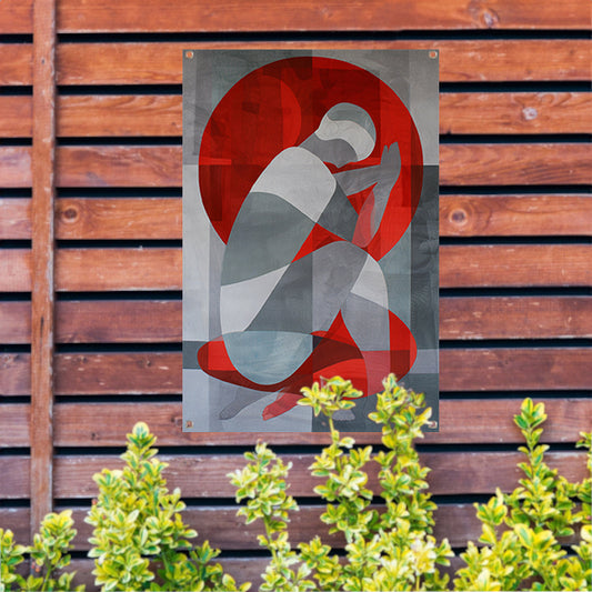 Abstracte kunst van geknielde persoon in cirkel tuinposter