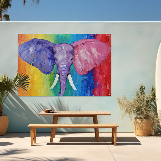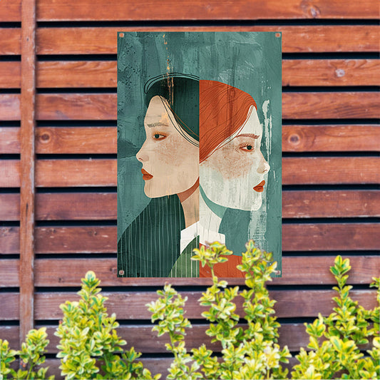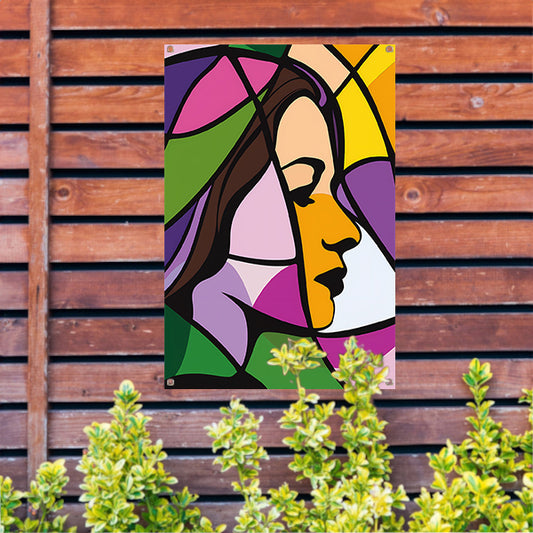 Abstract portret met kleurrijke geometrische vormen tuinposter