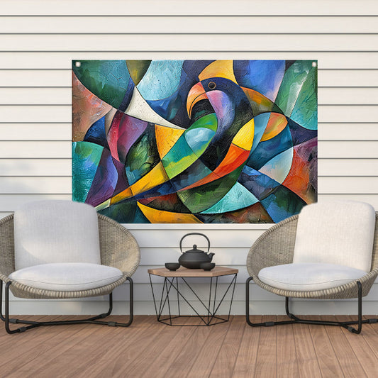 Abstract kunstwerk van kleurrijke papegaai tuinposter