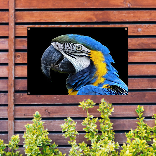 Realistisch schilderij van kleurrijke papegaai tuinposter