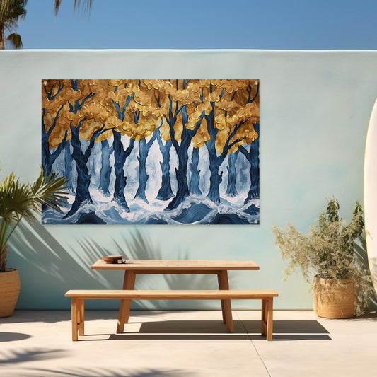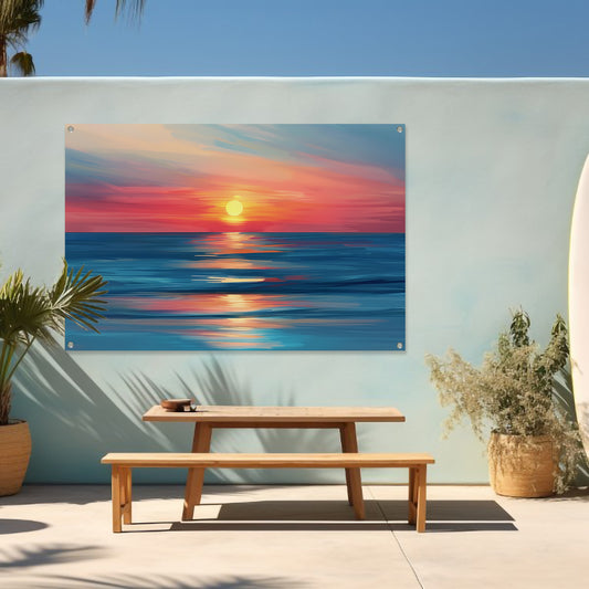 Minimalistische schildering van kleurrijke zonsondergang tuinposter