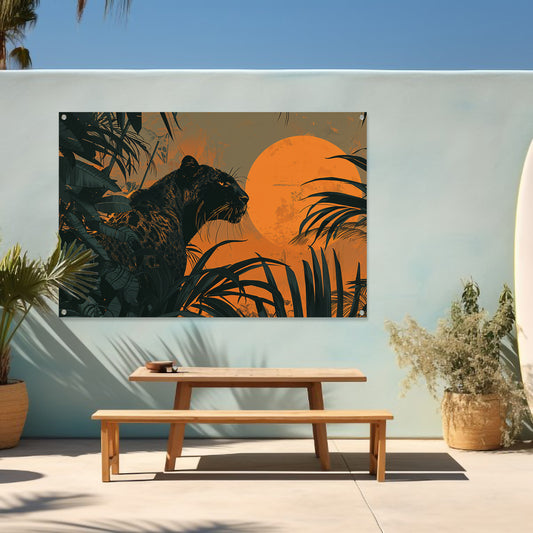 Panter in jungle bij zonsondergang schilderij tuinposter