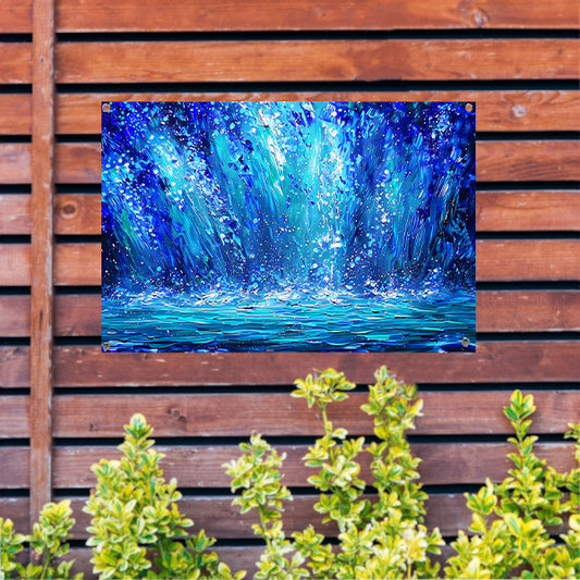 Dynamische abstracte waterval in blauwe tinten tuinposter