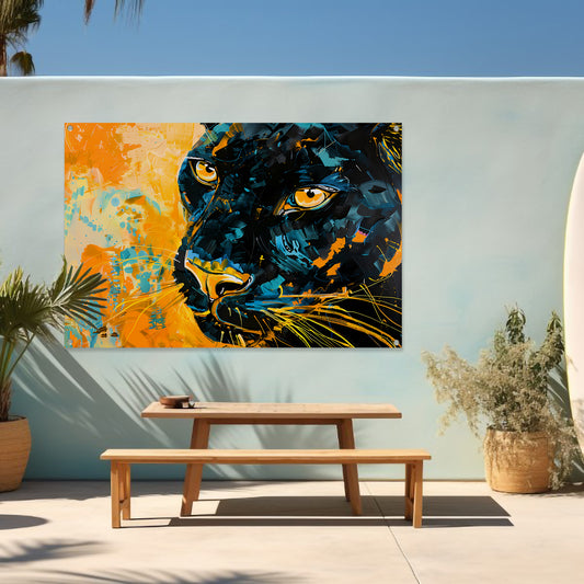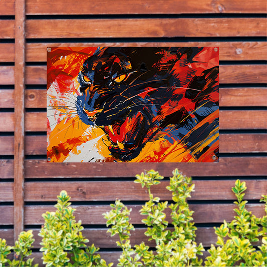 Abstract schilderij van kleurrijke zwarte panter tuinposter