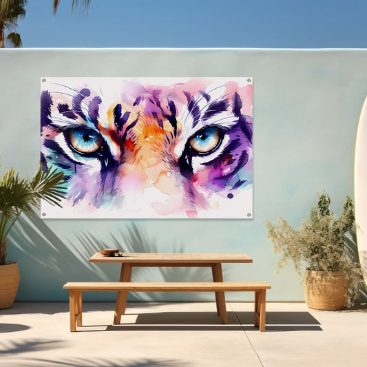 Abstracte tijgerogen in kleurrijke aquarelstijl tuinposter