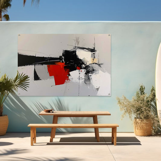 Dynamisch abstract schilderij met kleurcontrast tuinposter
